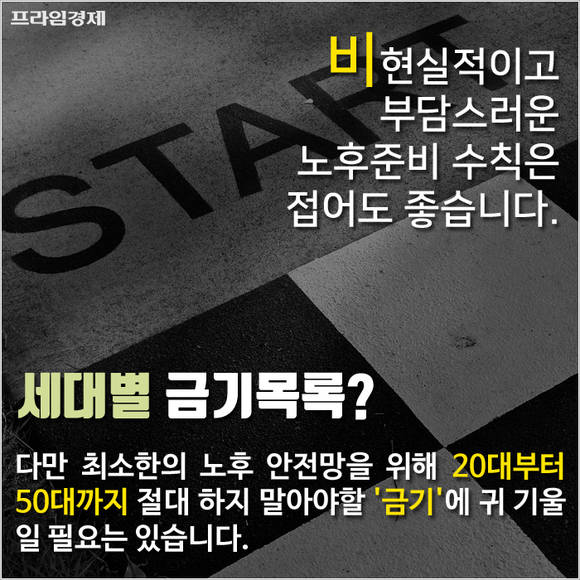 다만 최소한의 노후 안전망을 확보하기 위해 20대부터 50대까지 절대 하지 말아야 할 '금기'에 귀 기울일 필요가 있습니다.