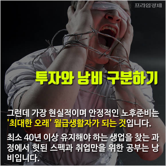 대안이 필요한 상황에서 뜬구름 잡기나 밀린 숙제 해치우듯 부담스러운 노후준비 수칙은 접어도 좋습니다.