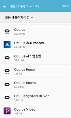 오큘러스 홈 앱은 기어VR을 한 번이라도 사용한 경우 설치된다.