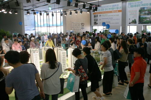 인천 부평구에서 온 관람객 김모씨(45)는 "현재 사는 아파트가 오래돼 새 아파트에 대한 관심이 많다"며 "평면이나 수납이 좋고 기반시설이 잘 갖춰진 송도 중심가와 5분거리에 있어 접근성이 좋은데 가격은 훨씬 저렴하고 입지도 좋아 먼저 계약상담을 받으려고 대기 중"이라고 말했다.
