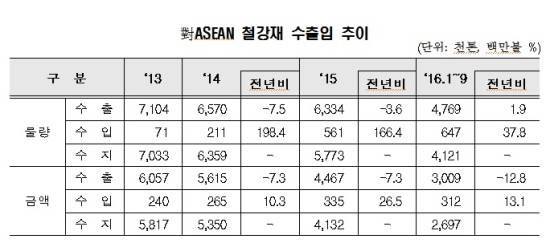 아세안은 연간 6000만톤의 철강을 수입하는 세계 최대 철강수입시장이다. 우리 철강업계의 대아세안 철강재 수출은 지난해 9월까지 477만톤·30억달러로 전체 철강수출의 20% 내외를 차지하고 있는 주력 수출시장이지만 중국산 덤핑 수출에 대한 수입규제를 강화하면서 한국산 철강제품도 동반 피소되는 경우가 많다.