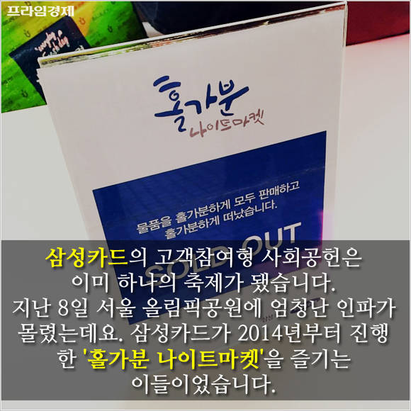삼성카드의 고객참여형 사회공헌도 이색적입니다. 지난 8일 서울 올림픽공원에 엄청난 인파가 몰렸는데요. 삼성카드가 2014년부터 진행한 '홀가분 나이트마켓'을 즐기려는 사람들이었습니다.