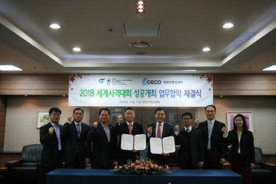 이날 협약식에는 이병국 사격대회 조직위원회 사무총장, 김호남 CECO 사업단장을 비롯한 관계자들이 참석했다. 업무협약에 따라 양 기관은 '2018 창원 세계사격선수권대회' 성공 개최를 위해 긴밀히 협력하기로 했다.