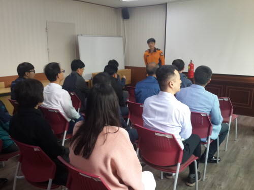 구체적으로 화재 발생 사실을 최초 목격 시 △대피 △119신고 △건물 내 소방시설 활용을 통한 효율적인 대응능력 강화 △초기소화 △피난유도 △소화기 작동법에 대한 교육을 실시했다.