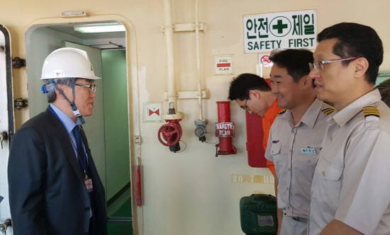 유 사장은 이날 오전 현대부산신항만을 방문해 한진해운 사태로 인한 화주 피해 최소화를 위해 지난달 9일 투입됐다가 이날 부산항에 도착한 첫 번째 미주노선 대체선박인 '현대 포워드'호를 방선해 선상간담회를 개최하는 등 시설물을 직접 둘러보고 현안을 점검했다.