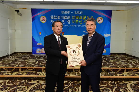 올해로 진주시와 자매결연 30주년을 맞이한 일본 기타미시 쓰지 나오타카 시장과 방문단 40여명은 진주시를 찾아 기념식수와 축하 행사를 하며 오랜 우호관계를 다짐했다.