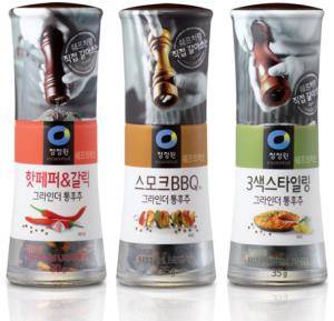 '쉐프의 허브 스모크BBQ(35g)' '쉐프의 허브 핫페퍼&갈릭(30g)' '쉐프의 허브 3색스타일링(35g)'은 고급 통후추에 각종 향신료를 더해 맛과 향을 강화했다는 설명이다.
