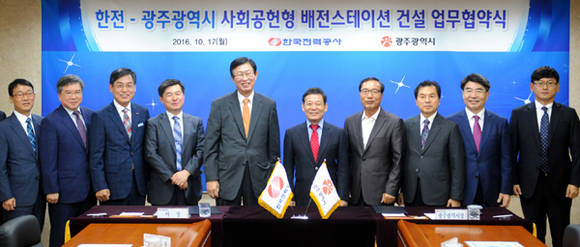 [프라임경제] 한국전력(사장 조환익)은 17일 오전 한전 광주전남지역본부에서 윤장현 광주광역시장, 충장로 상가번영회장 등이 참석한 가운데 광주광역시와 '주민친화형 배전스테이션 구축 시범사업' 추진을 위한 업무협약을 체결했다.