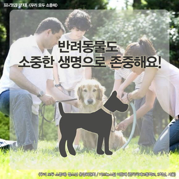 [프라임경제] '우리 모두 소중해' 캠페인의 재능기부 편집위원으로 참여하는 청소년 학생들은 발달장애인들의 감수를 거친 [우리모두뉴스] 기사를 카드뉴스로도 제작합니다. 이번에는 한국국제고등학교 2학년 이든해 학생이 '시각장애인 안내견, 편견 없이 봐주세요' 기사를 카드뉴스로 제작했습니다.