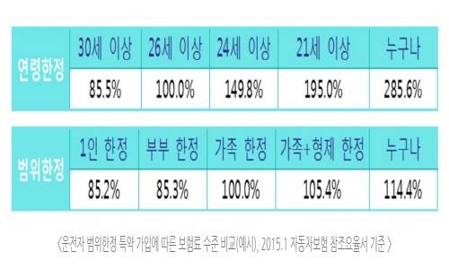 위 표에서 보듯이 운전자 범위를 어떻게 한정하느냐에 따라 보험료도 크게 차이 나는데요. 물론 보험료 차액은 보험사 및 가입 조건 등에 따라 다를 수 있지만, 설정하는 것과 안 하는 것의 차이는 큽니다.