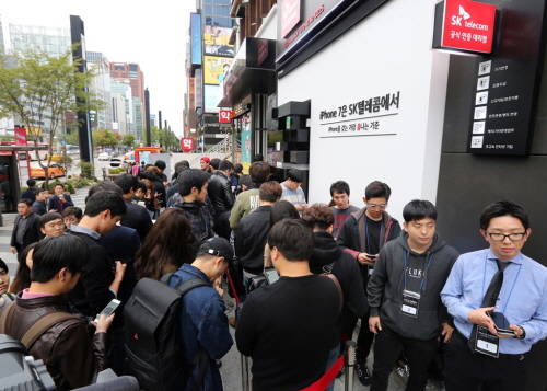 24일 이동통신 업계에 따르면 아이폰7 시리즈가 21일 정식판매 후 주말 이틀 동안만 20만대 개통됐다. 사전예약 가입고객도 전작인 '아이폰6S 시리즈' 대비 두 배 이상 늘어나는 등 인기를 끌고 있다.
