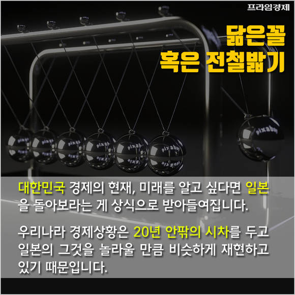 [프라임경제] 대한민국 경제의 현재, 미래를 알고 싶다면 일본을 돌아보는 게 상식입니다. 우리나라 경제상황은 20년 안팎의 시차를 두고 일본의 그것을 놀라울 만큼 비슷하게 재연하고 있기 때문입니다.