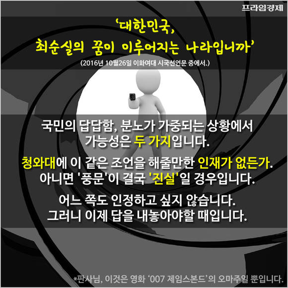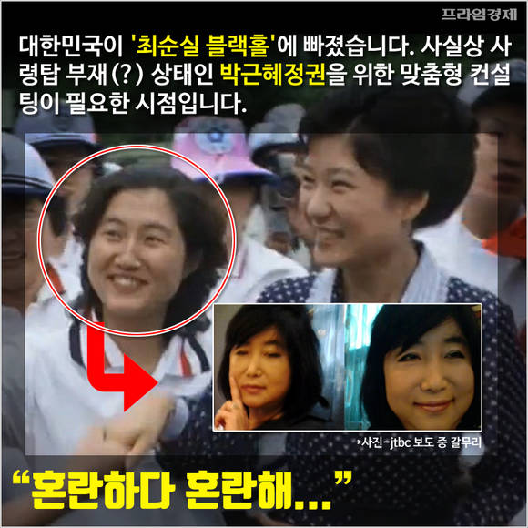 [프라임경제] 대한민국이 '최순실 블랙홀'에 빠졌다. 사실상 사령탑 부재 상태나 다름없는 박근혜정권을 위한 맞춤형 컨설팅이 필요한 시점이다.