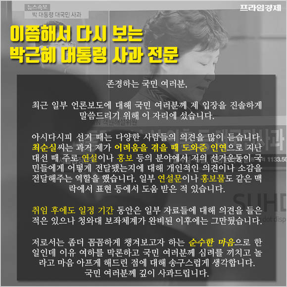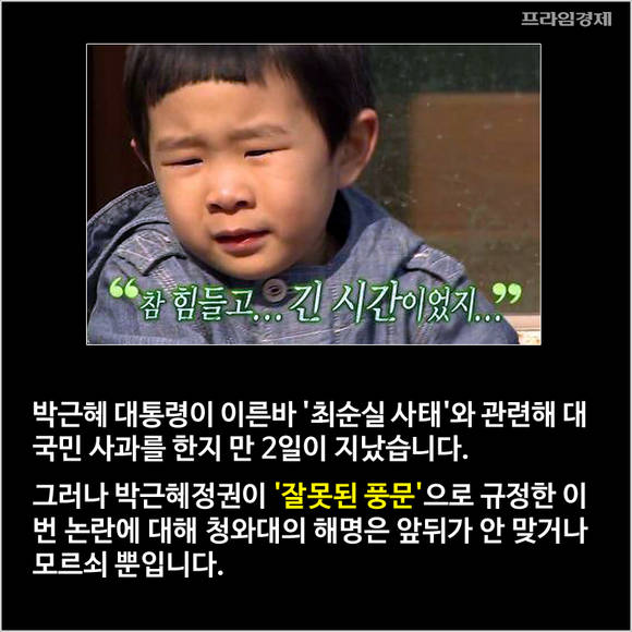 박근혜 대통령이 이른바 '최순실 사태'와 관련해 대국민 사과를 한지 만 2일이 지났다. 그러나 '잘못된 풍문'으로 규정한 이번 논란에 대해 청와대의 해명 노력은 아주 없다시피 하다.