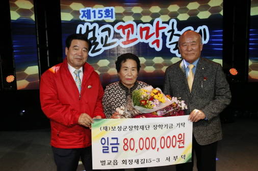 지난 29일 제15회 벌교꼬막축제 기념식에서 서부덕 할머니는 지역인재육성의 뜻을 함께하기 위해 보성군장학재단(이사장 박호배)에 장학금 8000만원을 전달, 지역 사회에 큰 감동을 줬다.