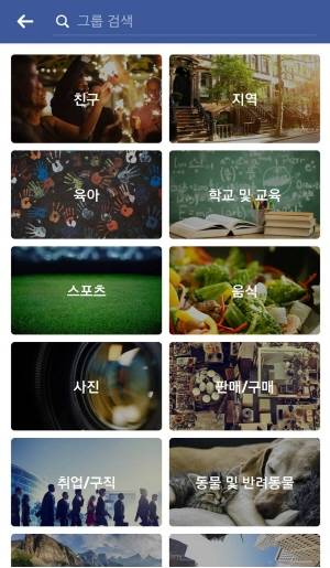 페이스북은 이번에 그룹 기능에 그룹 둘러보기 기능을 추가해 음식·스포츠·취업/구직·뉴스/정치·유머·게임 등 총 25가지 주제 별로 새로운 그룹을 검색하고 한눈에 살펴볼 수 있도록 했다.