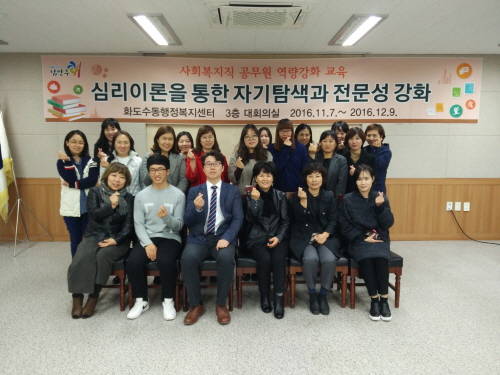 한편 화도수동행정복지센터는 복지허브화 선도지역으로 지역 활동가들의 사회복지역량을 강화하기 위한 교육은 물론, 실무에 임하며 자칫 소진될 수 있는 사회복지사들의 역량강화를 위해 교육을 전개 중이다.