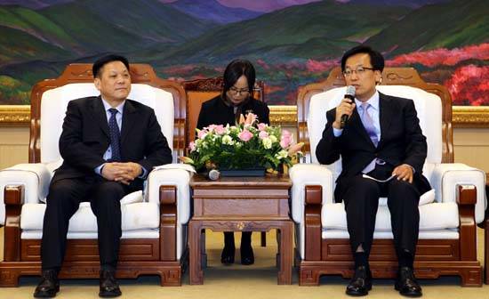 [프라임경제] 박병호 광주광역시 행정부시장이 8일 오전 시청 비즈니스룸에서 교류 차원에서 광주를 찾은 중국 창사시 천저후이 상무부시장 등 방문단 일행을 접견하고 있다.