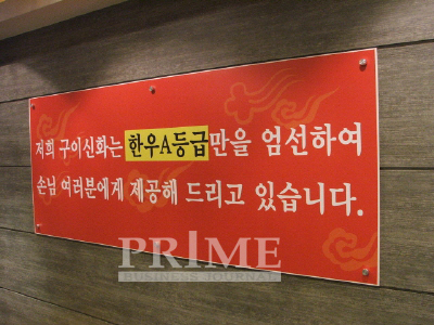 김주승은 한우중에서도 최고급 육질로 소문난 횡성 한우를 확보하기 위해 직접 안양에 있는 우시장으로 가서 경매해온다고 했다. 아닌게 아니라 구이신화의 꽃등심은 정교하고도 한송이 꽃처럼 아름다운 마블무늬가 일정한 간격으로 수놓아져 있는게 한눈에 봐도 최상의 육질임을 알수 있었다.