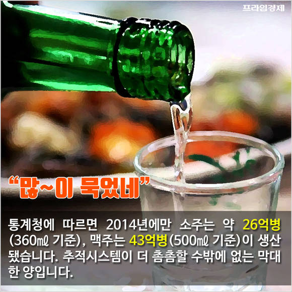 통계청에 따르면 2014년에만 소주는 360㎖ 기준 약 26억병, 맥주는 500㎖ 기준 43억병이 생산됐습니다. 그만큼 추적시스템이 까다로울 수밖에 없는데요.