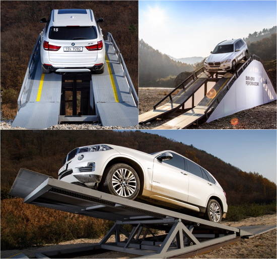 다음 순서는 X5와 함께하는 △롤러(빙판길) △언덕경사로 △테라포드가 포함된 인종 장애물 구간.