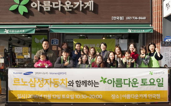 이번 르노삼성의 '아름다운 토요일' 행사는 아름다운가게 1호점인 안국점에서 진행됐으며, 임직원 10여명은 임직원들이 기부한 다양한 소장품을 직접 매장에서 판매하는 등 나눔을 몸소 실천했다.