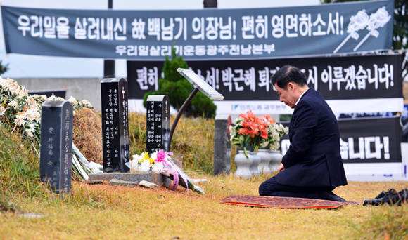 [프라임경제] 윤장현 광주광역시장이 13일 오전 북구 망월동 5·18 구묘역에 안장된 故 백남기 농민의 묘역을 찾아 헌화 분향했다.