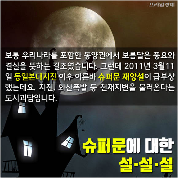특히 2011년 3월11일 동일본대지진 이후 슈퍼문이 뜨면 지진, 화산폭발 등 천재지변이 발생한다는 이른바 '슈퍼문 재앙설'이 세계적으로 퍼져나갔다.