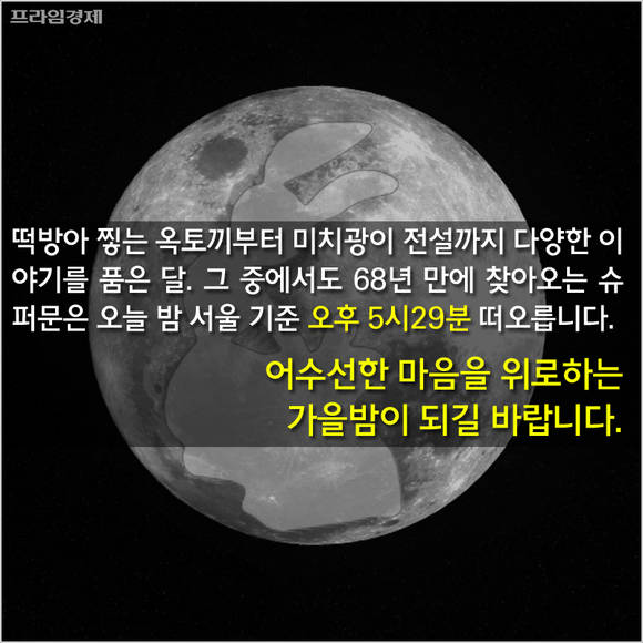 한편, 68년 만에 찾아올 슈퍼문은 오늘 밤 서울 기준 오후 5시29분 떠오를 것으로 보인다.