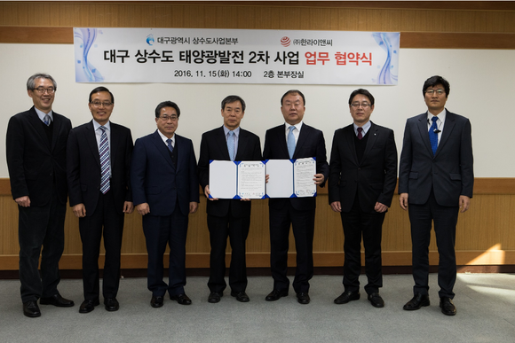 [프라임경제] 대구시 상수도사업본부는 지난 15일 지난달 태양광 발전 2차 사업 공모를 통해 사업자로 선정된 지역업체인 ㈜한라이앤씨와 업무협약(MOU)을 체결했다.