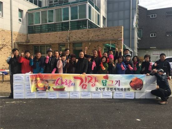 앞서 금사면에서는 지난 17일부터 18일까지 금사주민자치센터에서 금사면 주민자치위원회와 프로그램 강사 등 30명의 참여로 불우이웃돕기 김장담그기 행사를 전개한 바 있다. 지난 행사를 통해 마련된 김장김치는 희망의집, 이포샘 요양원, 금사지역아동센터 등 관내복지시설과 저소득 가정 40가구에 전달됐다.