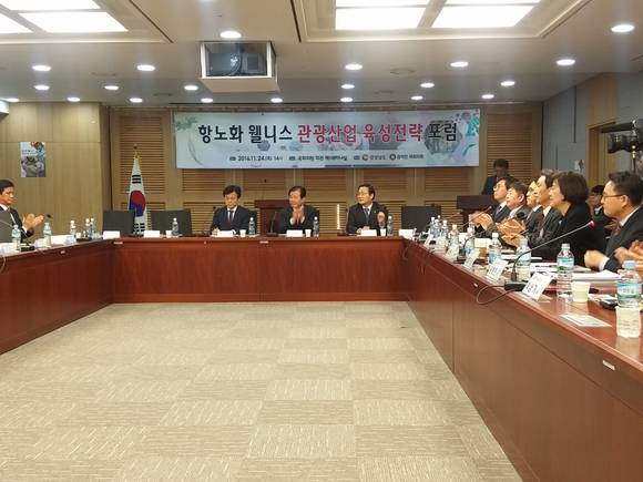 이날 패널들은 고부가가치 천연물소재 개발 및 활용 방안을 비롯해 항노화 식품과 관광산업의 연계방안, 정부의 항노화 산업정책, 웰니스 관광객 유치방안 등 다양한 의견을 제시했다.