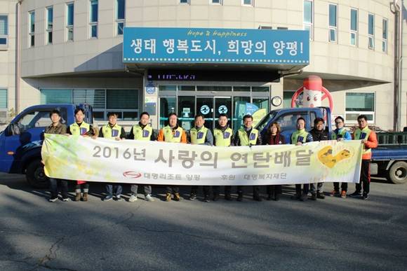 [프라임경제] 대명리조트 양평(총지배인 박신균) 임·직원 12명은 24일 개군면 거주 독거노인 등 저소득 가정 4가구를 방문해 각각 500장씩 총 2000장의 연탄을 전달하는 2016년 사랑의 연탄배달 행사를 펼쳤다.
