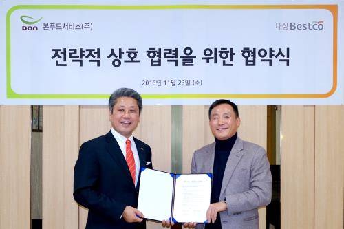 양사는 23일 서울 중랑구 상봉동 소재 대상베스트코 본사에서 업무협약식을 진행했다. 식자재공급과 전략적 제휴를 통해 동반성장을 꾀할 방침이다.