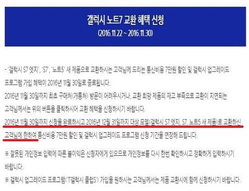 일반적으로 기업 과실로 교환해야 하는 경우, 기업은 혜택을 자동 연장하거나 추가 보상안을 마련해 고객을 유인한다. 그럼에도 삼성전자는 수동 신청 방식을 택했다. 그 결과 혜택 연장 소식을 모르는 고객은 다음 달부터 결함이 입증된 갤럭시노트7을 아무 혜택 없이 교환해야 한다.