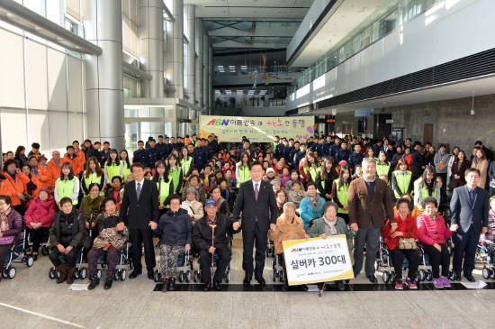 성남지역방송인 ㈜아름방송네트워크가 300명 어르신의 실버카 구매 비용 3000만원을 후원하고, 성남시자원봉사센터가 노인복지시설 등에서 복지 사각지대 어르신을 추천받아 이번 사랑 나눔이 성사됐다.