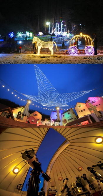 △아침고요수목원의 별이 빛나는 밤 '오색별빛정원전'△쁘띠프랑스, 낭만적인 작은 프랑스 마을의 겨울밤 '제3회 어린왕자 별빛축제' △천제의 아름다움을 누릴수 있는 '자연과별천문대 등이 꼽혔다.
