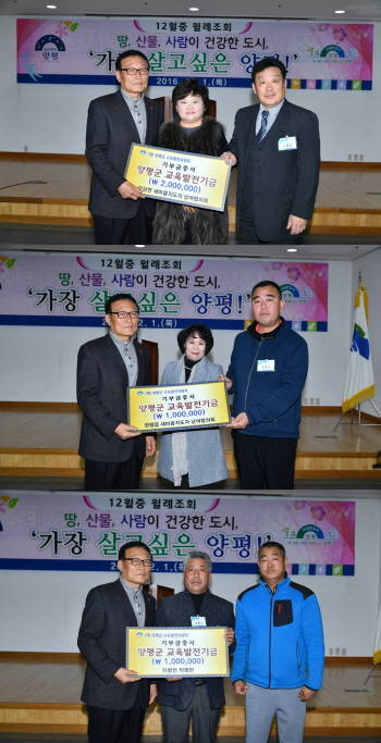 [프라임경제] 경기도 양평군에서는 연말을 맞이해 지역인재 양성을 위한 교육발전기금 기탁이 줄을 잇고 있다.