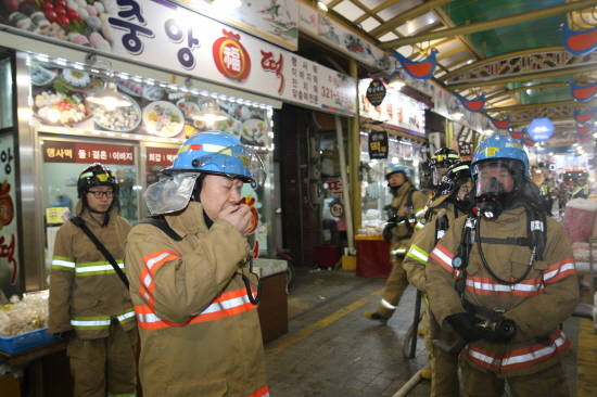 이날 훈련은 지난달 30일 대구 서문시장에서 발생한 대형 화재를 계기로 전통시장 내 재난사고로 인한 인명과 재산피해를 방지할 목적으로 마련됐다.