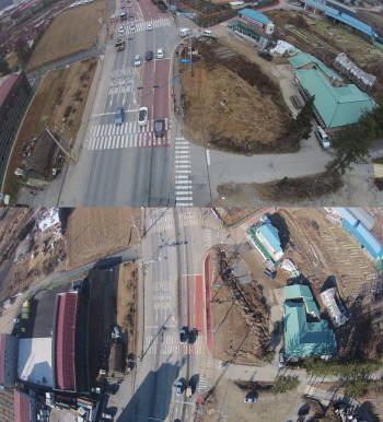이에 처인구는 이곳에 매산방향의 2차선 도로를 확장해 길이 42m 폭 3.5m의 우회전 차로 1개를 신설하고 미끄럼 방지 포장을 했다. 또 전신주, 신호등, 가로등을 인도 뒤 공터 쪽으로 이설해 운전자들의 시야도 확보했다.