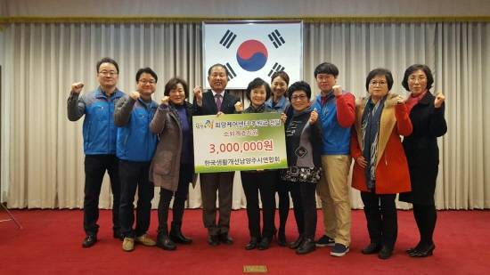 [프라임경제] 14일 남양주시농업기술센터(소장 김학훈) 3층 대강당에서 한국생활개선남양주시연합회(회장 윤동숙)가 연말 총회를 맞아 남양주시 희망케어센터에 300만원의 후원금을 전달해 주변에 훈훈함을 전하고 있다.