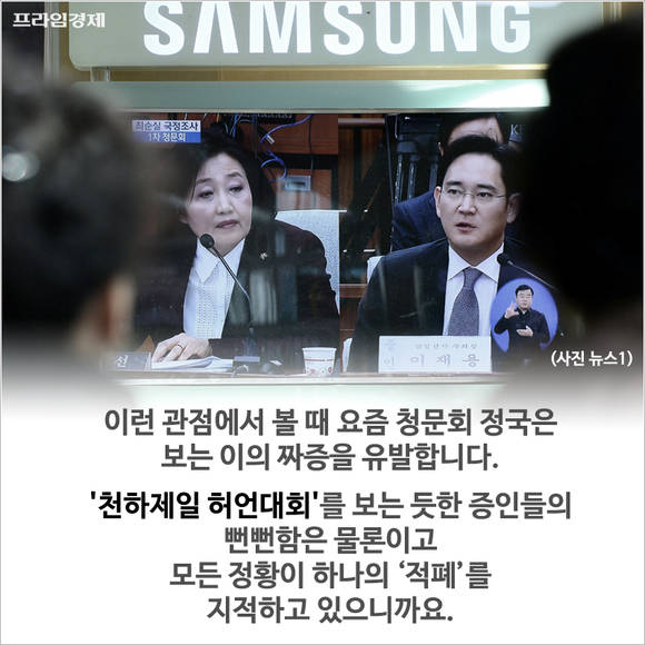 이런 관점에서 볼 때 최근 벌어지고 있는 청문회 정국은 온 국민의 짜증을 유발한다. '천하제일 허언대회'로 전락한 청문회 증인들의 뻔뻔함은 물론이고 모든 정황이 하나의 적폐를 지적하고 있기 때문이다.