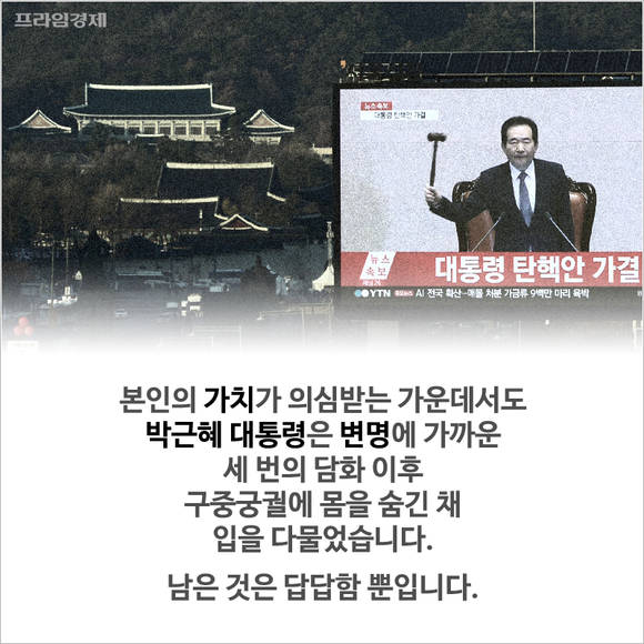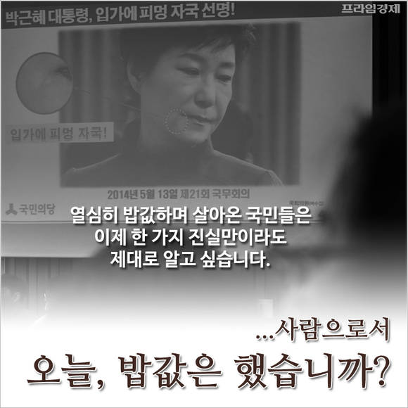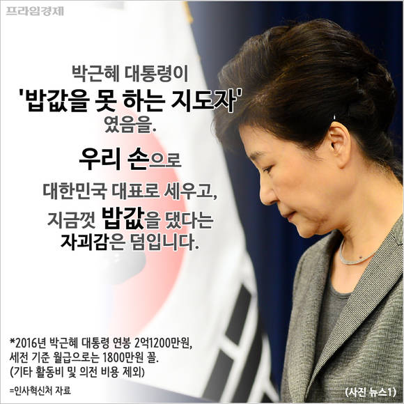 박근혜 대통령은 '밥값을 못 하는' 지도자이며 심지어 박 대통령을 그 자리에 앉힌 것도, 지금껏 밥값을 대온 것도 우리 자신이라는 자괴감까지 더했다.