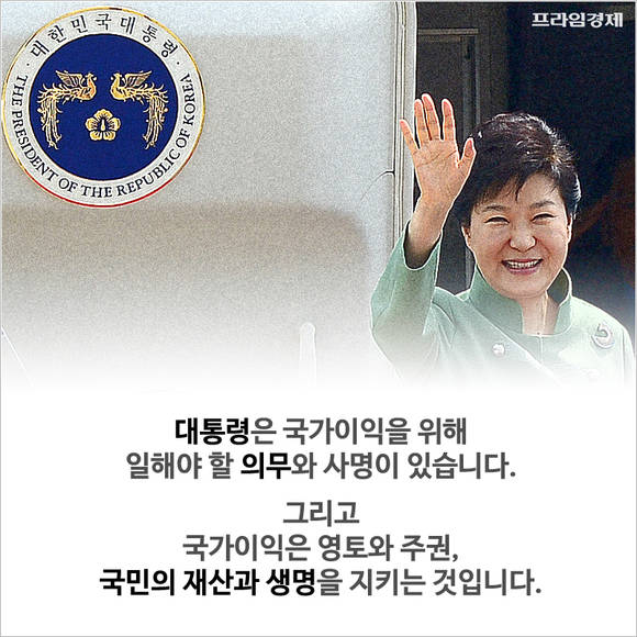 서민에 비해 상당히 후한 보수를 받는 조건으로 대통령은 국가이익을 위해 일해야 한다. 국가이익이란 영토와 주권 그리고 국민의 생명과 재산을 지키는 것을 뜻한다.