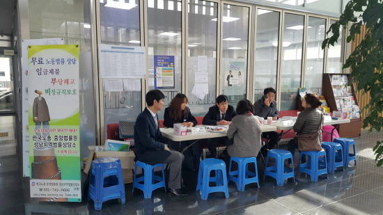 상담소 운영기간 오전 10시부터 오후 4시까지 한국노총 중앙법률원 소속의 변호사, 법무사, 노무사 등 법률 자문단이 출장을 나와 경제적 이유 등으로 법의 보호를 받지 못하는 일반 서민들을 무료로 상담한다.