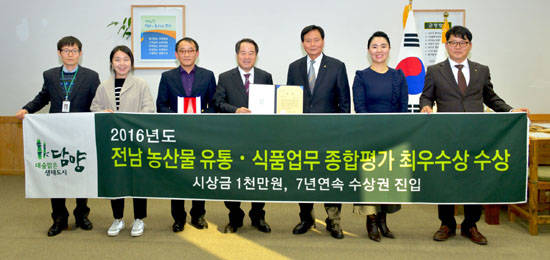 [프라임경제] 담양군이 전남도가 22개 시군을 대상으로 실시한 '2016년도 농산물 유통식품 업무 평가'에서 최우수상에 선정돼 1000만원의 상사업비를 확보했다. 담양군은 전남도 주관 농산물 유통 식품 관련 평가에서 7년 연속 상위권을 유지했으며 친환경 농업의 선도지역으로 입지를 다졌다.