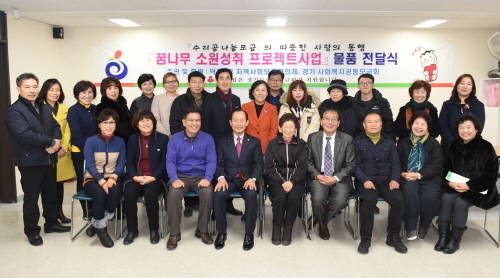 이날 행사는 사회보장협의체위원 및 수혜자 가족 40여명이 참석했으며, 제과제빵사를 꿈꾸는 청소년에게 △오븐과 제빵도구, 할머니와의 식사를 원하는 조손가정에 △뷔페식권, 할머니의 건강을 희망하는 △보약선물 등이 제공됐다.