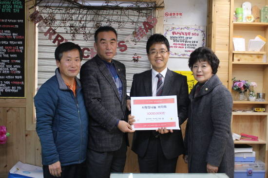 [프라임경제] 용인시 처인구 양지면은 지난 21일 조창희·권미나·지미연·민병숙 도의원과 박원동 시의원이 관내 장애인복지시설인 한울공동체에 성금 100만원을 전달했다고 밝혔다. 시의원들은 연말을 맞아 관내 복지시설에 작은 도움이라도 주고 싶어 뜻을 모았고, 직접 한울공동체를 방문해 성금을 전달했다고 설명했다.양지면 관계자는 "관내 장애인복지시설에 시·도의원들이 직접 방문해 관심을 가져주셔서 감사하다"고 말했다.