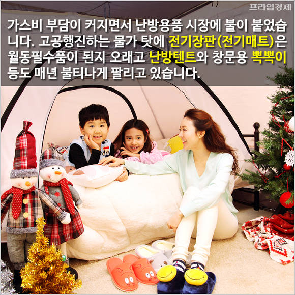 [프라임경제] 가스비 부담이 커지면서 난방용품 시장에도 불이 붙었다. 보일러 틀기 무서운 물가에 전기장판(전기매트)은 월동필수품이 된지 오래고, 난방텐트와 창문용 뽁뽁이 등도 불티나게 팔리는 중이다.