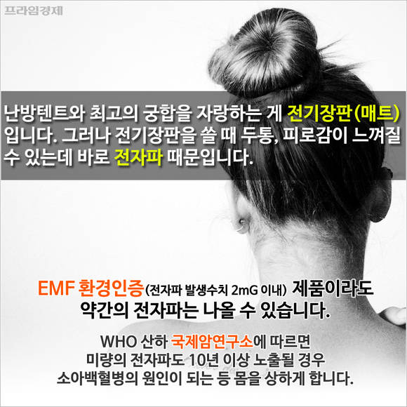 WHO 산하 국제암연구소에 따르면 적은 양의 전자파라도 10년 이상 장기간 노출될 경우 소아백혈병의 원인이 되는 등 몸을 상하게 한다. 최근 임산부나 젊은 부모들 사이에서 전자파를 완전히 차단한 의료용 온열매트에 대한 관심이 높아진 것도 이 때문이다.